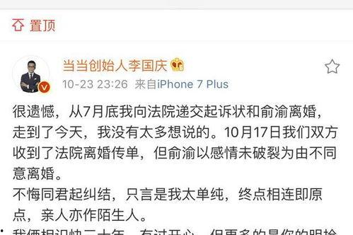 俞渝与当当网创始人李国庆的婚姻生活也是人们关注的焦点。在最新的爆料中,俞渝透露了自己和李国庆的婚姻生活并不像外界想象的那样美满。她表示,自己和李国庆在经营当当网的过程中,因为工作压力和性格差异,导致夫妻关系紧张。虽然两人最终选择了离婚,但俞渝表示,她对这段婚姻仍然抱有感激之情。